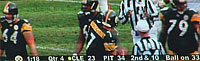 With such a big lead, the Steelers began to get conservative, in an attempt to see the clock out. On one third and short situation, even I predicted they would give the ball to Bettis. They did and he was stopped!